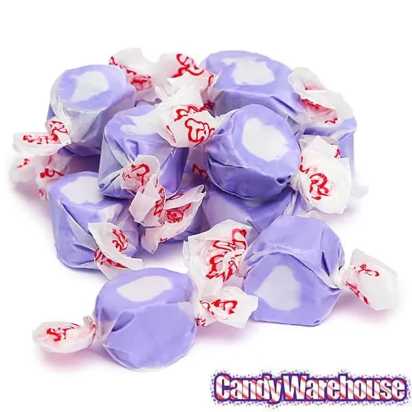 Bag contains 2.5 pounds of Gourmet Huckleberry Salt Water Taffy Candy.